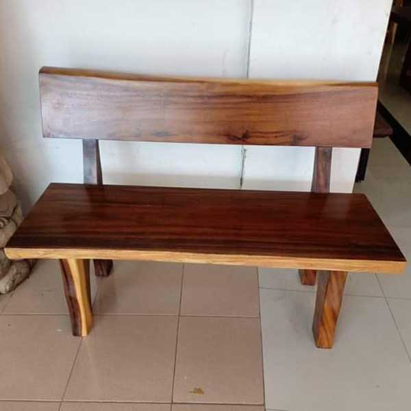 Bangku dengan sandaran dari kayu trembesi berbentuk sederhana tetapi mewah dengan ketebalan 6-8 cm, terbuat dari kayu utuh ( solid ) tanpa sambungan untuk top bangku dan sandarannya. Kayu trembesi / Meh merupakan salah satu kayu dari daerah tropis yang sudah terkenal kekuatannya serta sangat indah warna kayunya. Bangku ini sangat cocok dipasangkan dengan meja makan dari kayu trembesi dan bisa di letakkan di dalam maupun di luar ruangan.