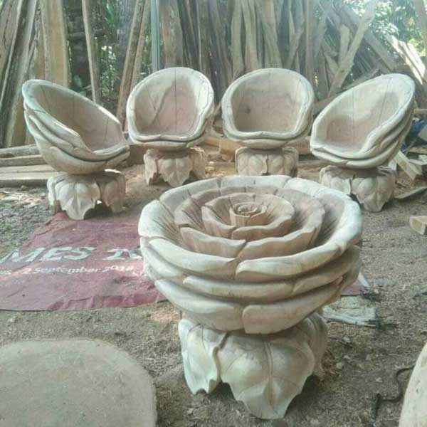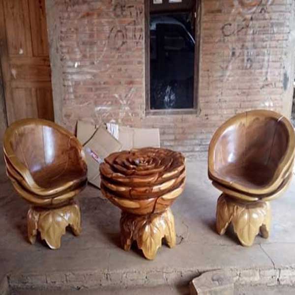 - Desain Unik: Kombinasi antara bentuk alami kayu dan ukiran yang rumit menjadikan set ini sangat istimewa dan menarik perhatian.