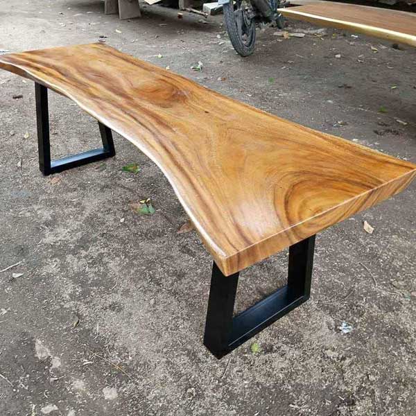 - Kayu Trembesi Solid: Dudukan bangku terbuat dari kayu trembesi solid yang terkenal dengan kekuatan dan ketahanan luar biasa. Pola serat kayunya yang unik dan alami menambahkan karakter dan keindahan pada setiap potongan.