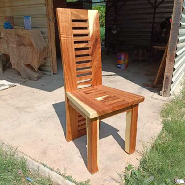 - Konstruksi Solid: Kursi ini dibuat dari kayu trembesi yang kuat dan kokoh, sehingga mampu menopang berat tubuh dengan stabil dan aman.
