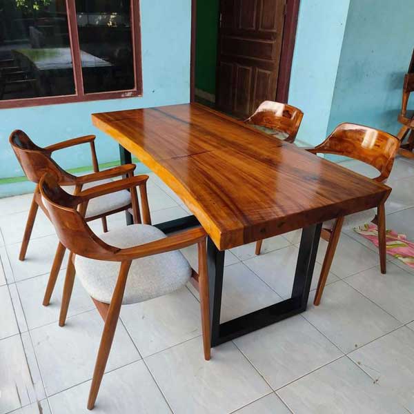 Set Meja Makan Trembesi Kaki Besi Kursi Jati